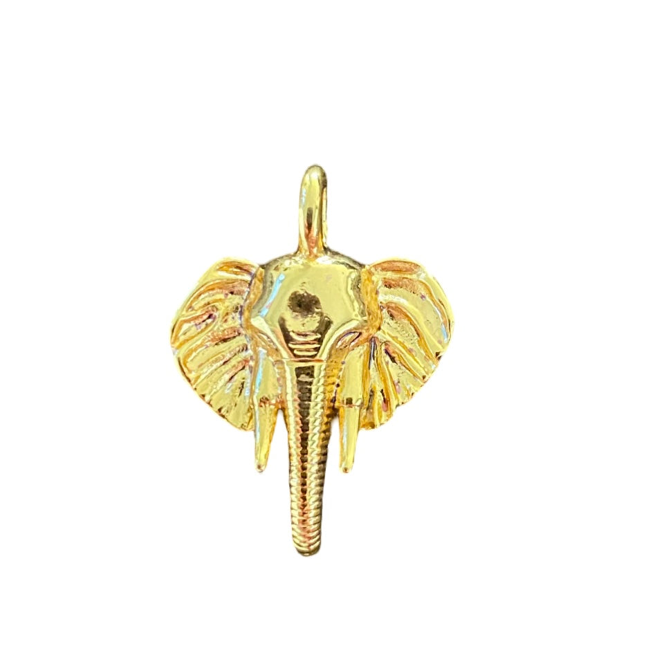 Dieser Anhänger von Pink Sand wurde aus vergoldetem Messing handgefertigt. Das Schmuckstück zeigt sich in Form eines Elefantenkopfs, der Glück, Fleiss und Stärke, aber auch Intelligenz, Geduld, Güte und Hingabe symbolisieren soll. Durch seine Bedeutung ist der Anhänger auch ein perfektes Geschenk.