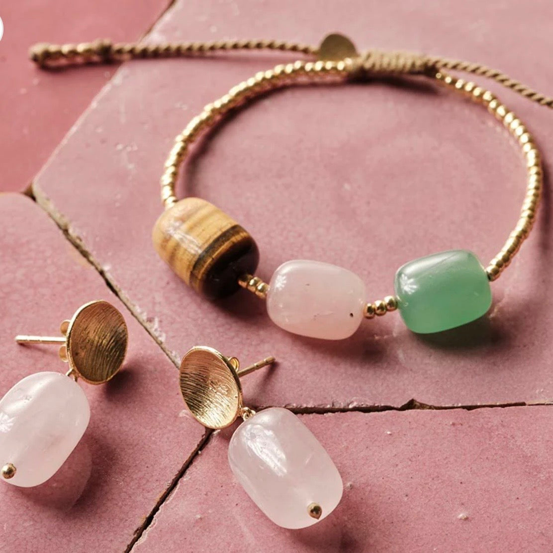 - Material: Messing, Aventurin, Rosenquarz, Tigerauge
