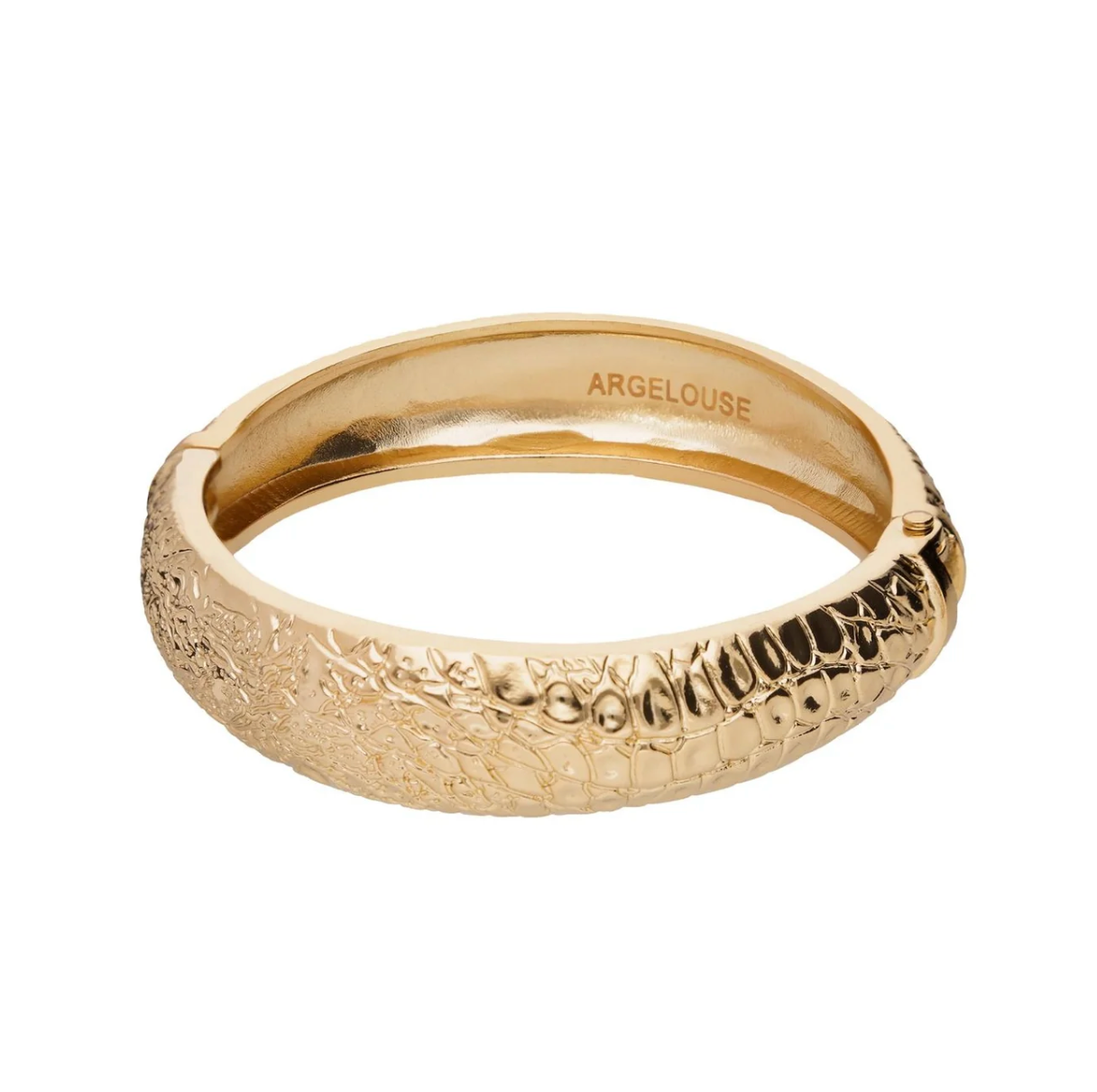 Der Armreif Amok Reptile wurde aus Messing und Emaille handgefertigt und ist ein Must-have der Amok-Kollektion von Argelouse. Sein einzigartiges Reptilienmuster, das aus jedem Blickwinkel anders wirkt, wurde von Margot Falcy, der Gründerin, entworfen. Mit seiner zarten Struktur fängt er das Licht elegant ein und lässt sich ideal mit den anderen Armreifen der Marke kombinieren, um einen raffinierten Kumulierungseffekt zu erzielen.