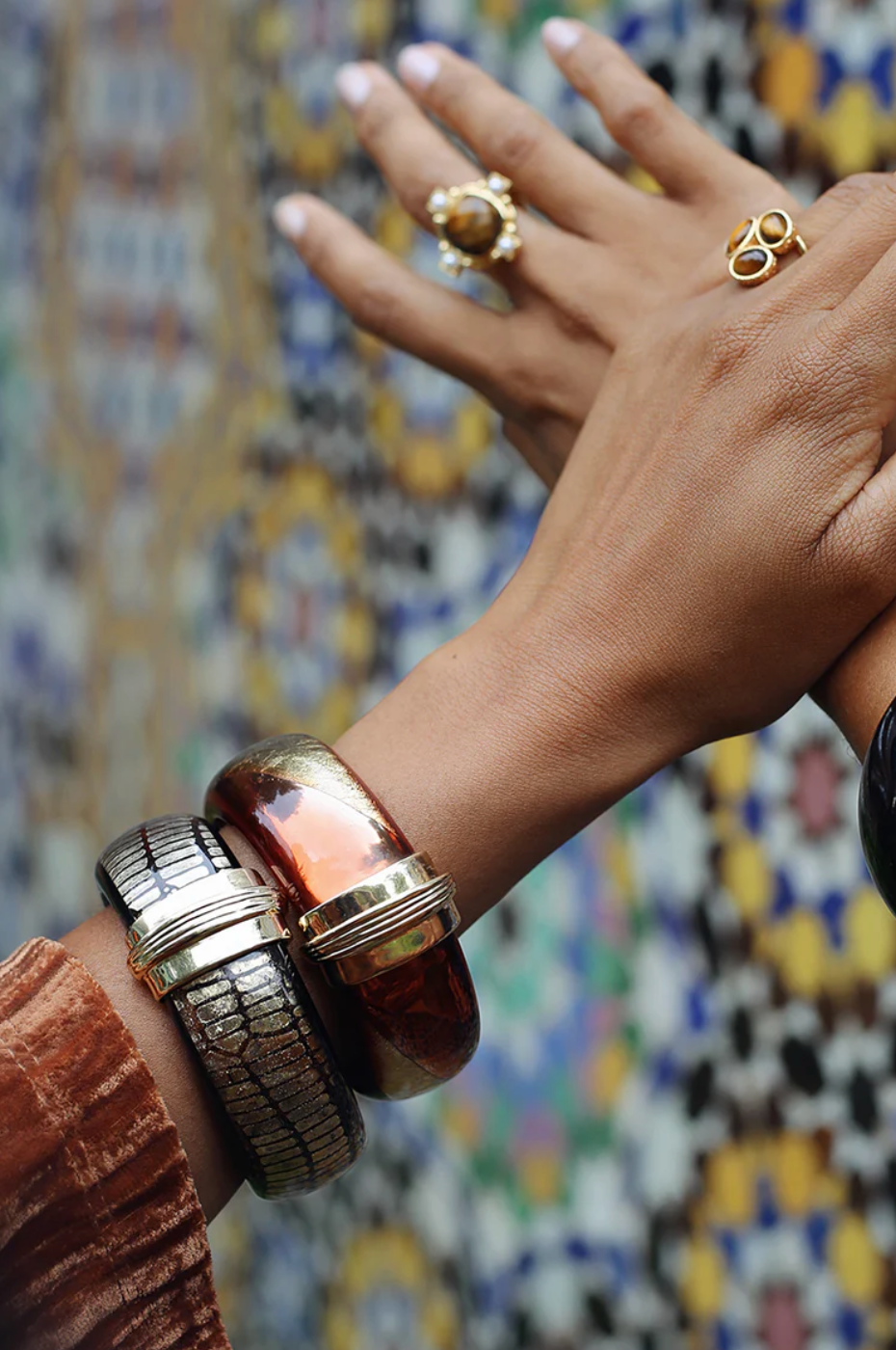 Breite Armreifen sind gerade äusserst angesagt. Die 80s-Style-Schmuckstücke können sowohl bei minimalistischen Looks interessante Akzente setzen, als auch extravagante Maximalismus-Outfits komplettieren.