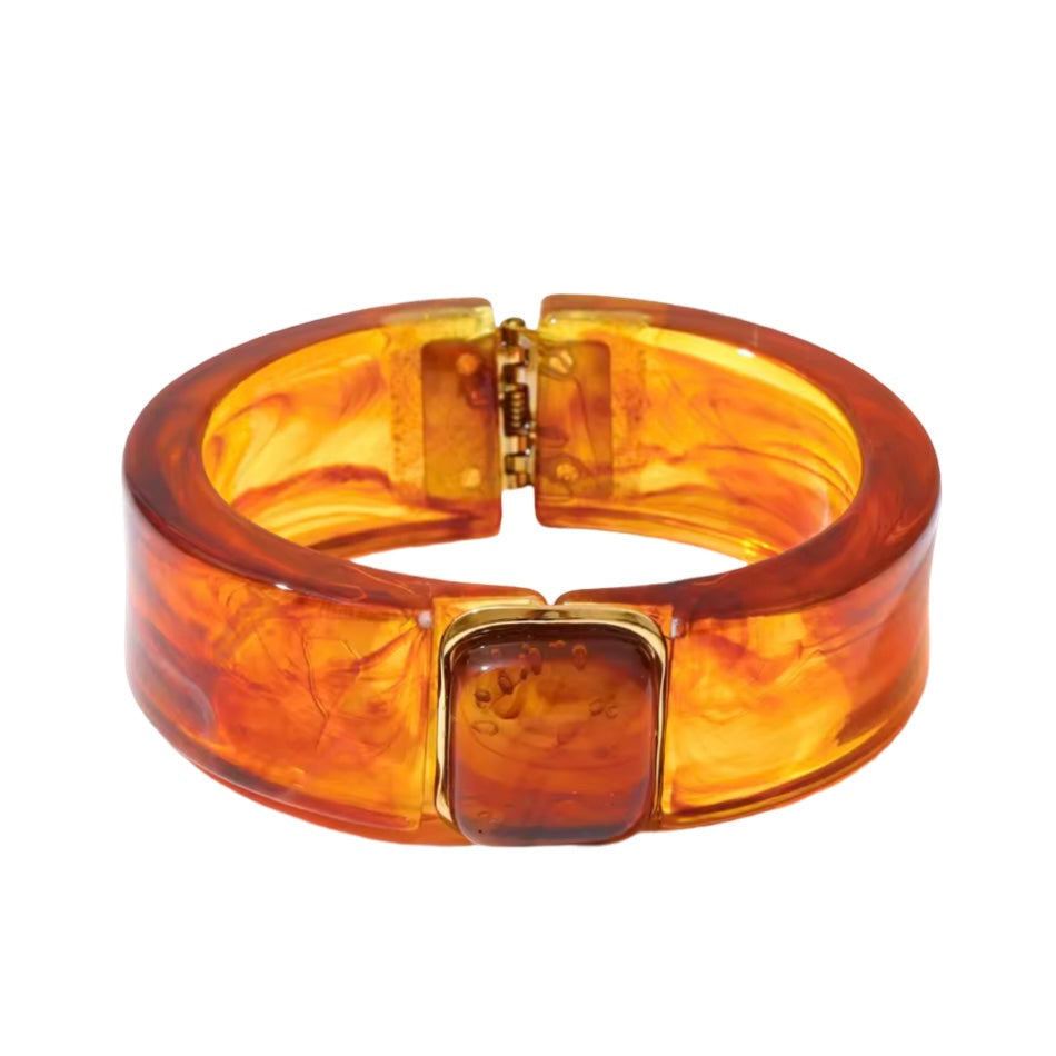 Dieser breite Armreif verströmt durch und durch zeitgenössisches Flair und setzt einen zeitgemässen Akzent. Das abgerundete Modell aus glänzendem Harz lässt sich dank des vielseitigen Brauntons zu praktisch allem tragen. Zusammen mit anderen Modellen getragen wirkt der Armreifen besonders eindrucksvoll und modern.