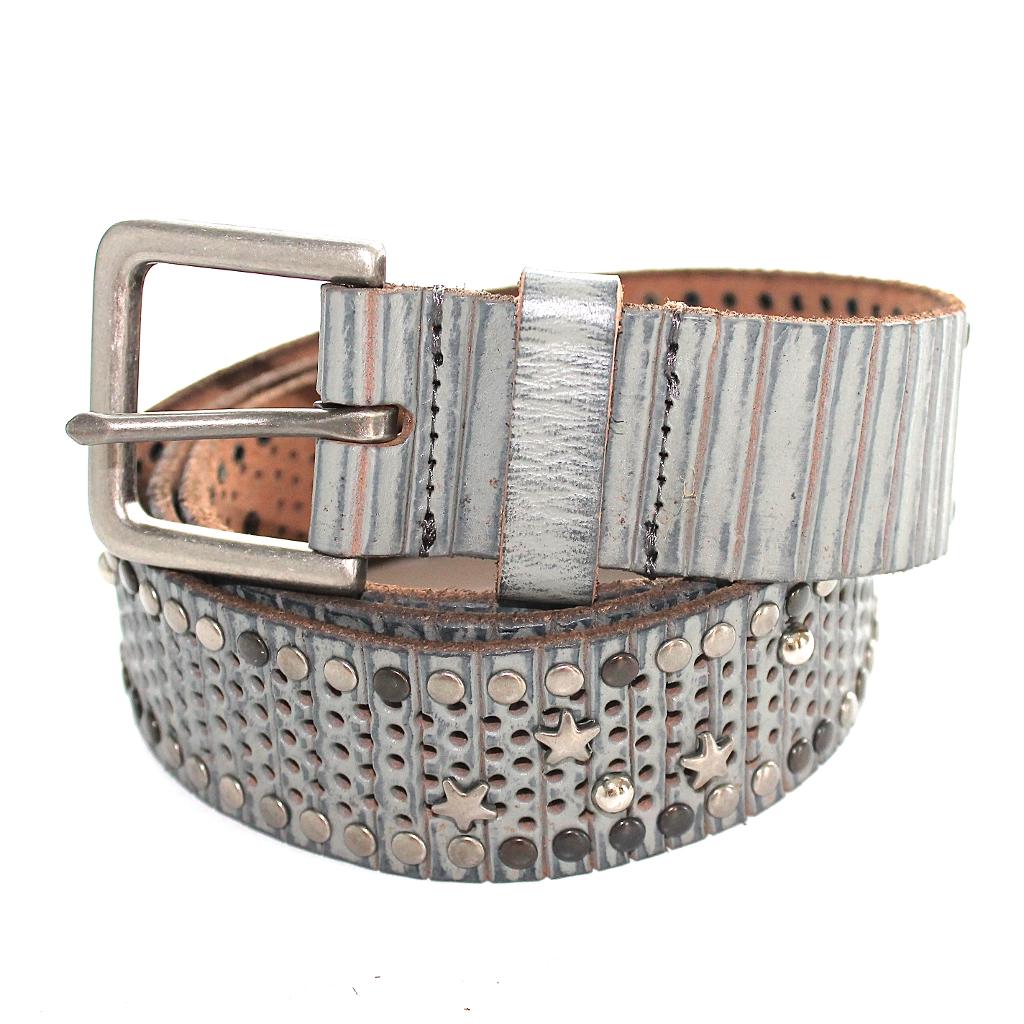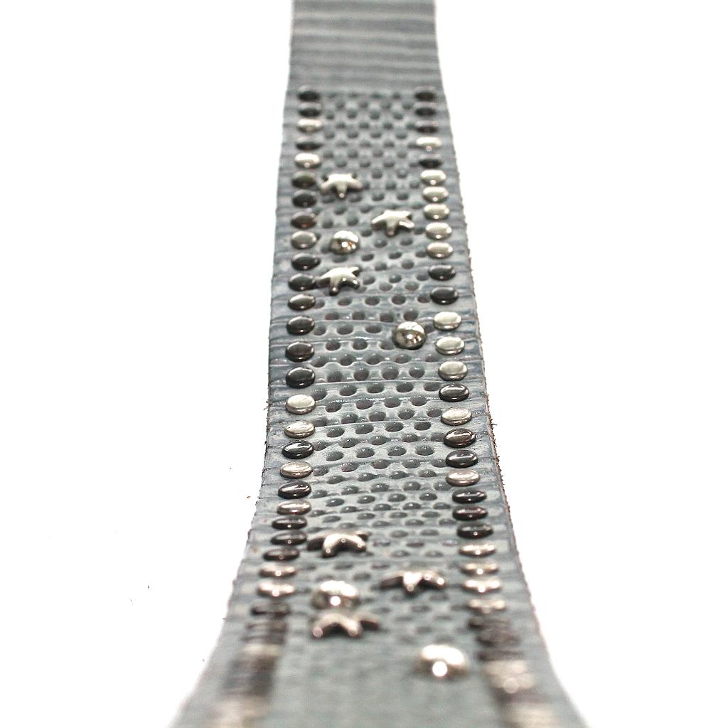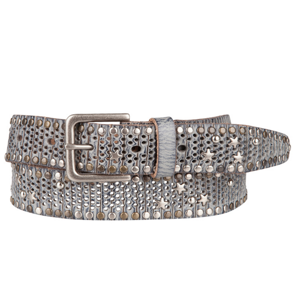 Mit lässigem Schick präsentiert sich dieser Nietengürtel, der besonders die alltägliche Jeans perfekt aufstylt. Mit feinem Glanz ziehen die verschiedenfarbigen Nieten und Sternchen Blicke auf sich. So macht eine unkomplizierte Coolness diesen Gürtel zu einem Unikat für Modebewusste, die einem schlichtes Outfit mit dem hochwertigen Ledergürtel den letzten Schliff verleihen.