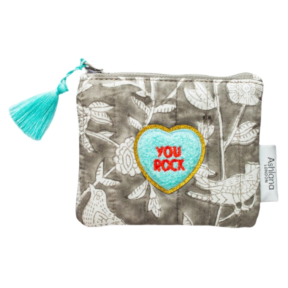 Dieses gesteppte Täschchen von Ashiana London wurde von Hand gefertigt und präsentiert sich mit einem praktischen Reissverschluss und einem wasserdichten Futter. Das Accessoire ist mit einem herzförmigen Patch versehen. Das Täschchen eignet sich perfekt für Karten, Münzen, Mini-Kosmetik oder kleine Elektrogeräte.
