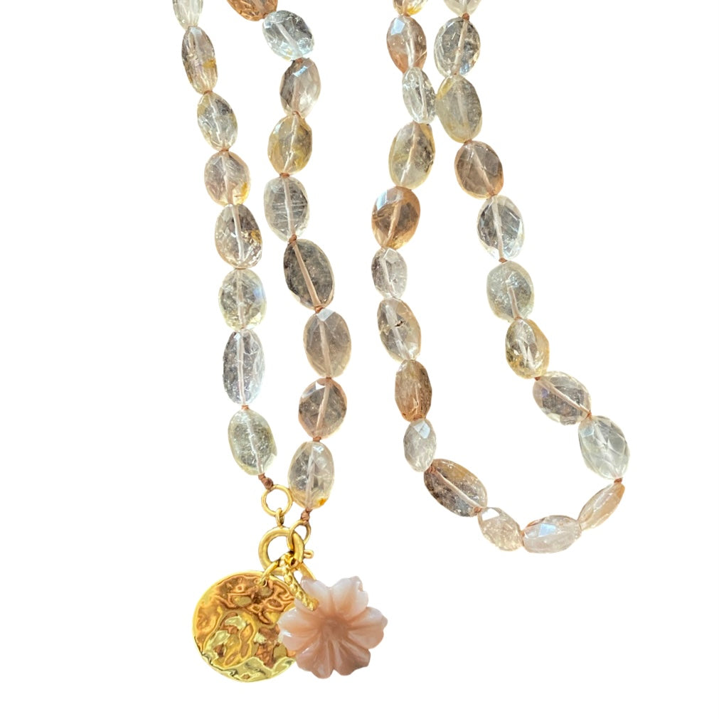 - Material: Quarz, Messing, Mondstein