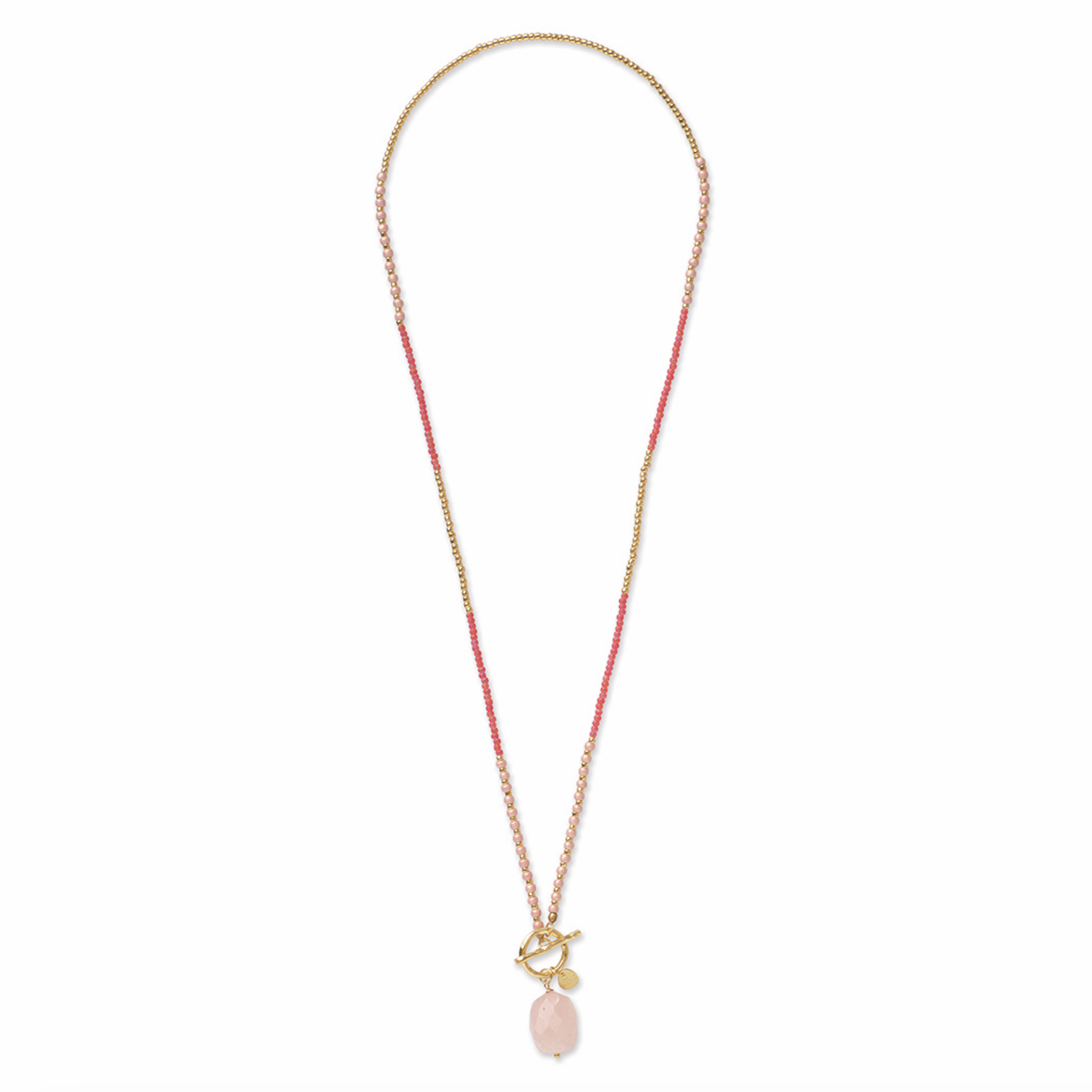 Diese Halskette aus der neuen Kollektion von A beautiful Story besteht aus Glasperlen und vergoldetem Messing und ist mit einem grossen Edelstein versehen. Mit einer Länge von 55.0 cm hat sie die ideale Länge, um mit anderen Modellen kombiniert zu werden.