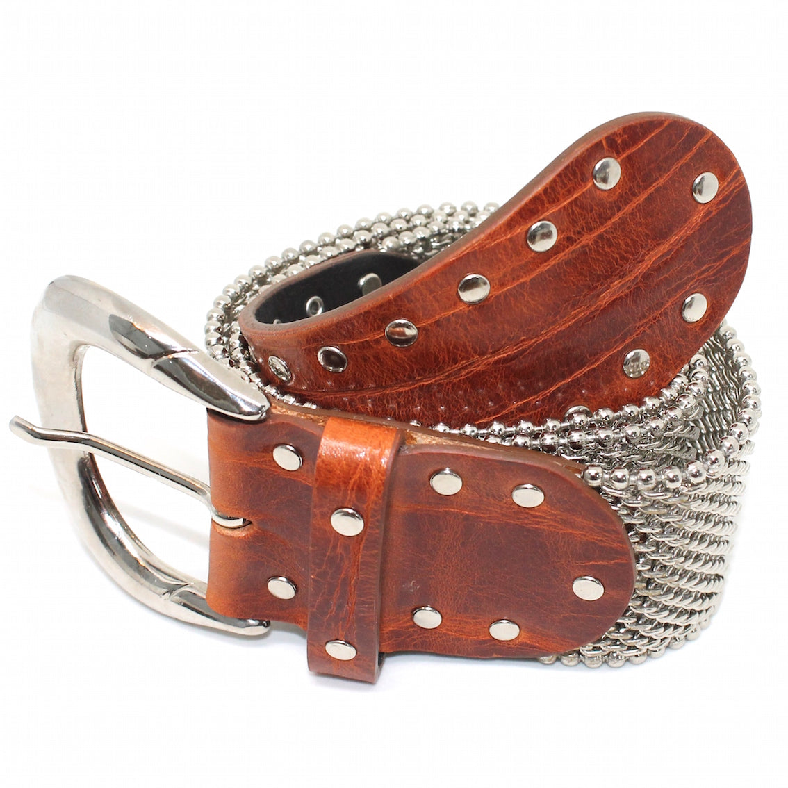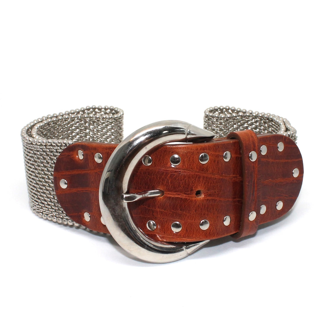 Dieser Aufsehen erregender Schmuckgürtel trägt unverkennbar die Handschrift von Designer Vittorio Nanni. Die aufwändige Gestaltung mit hochwertigem weichem Leder und dem breiten Meshband aus Metall machen dieses Accessoire zu einem sicheren Eyecatcher. Mit diesem Gürtel werden Ihre Kleider super inszeniert. Tragen Sie es auch, um weite Oberteile und Kleider elegant zu taillieren.