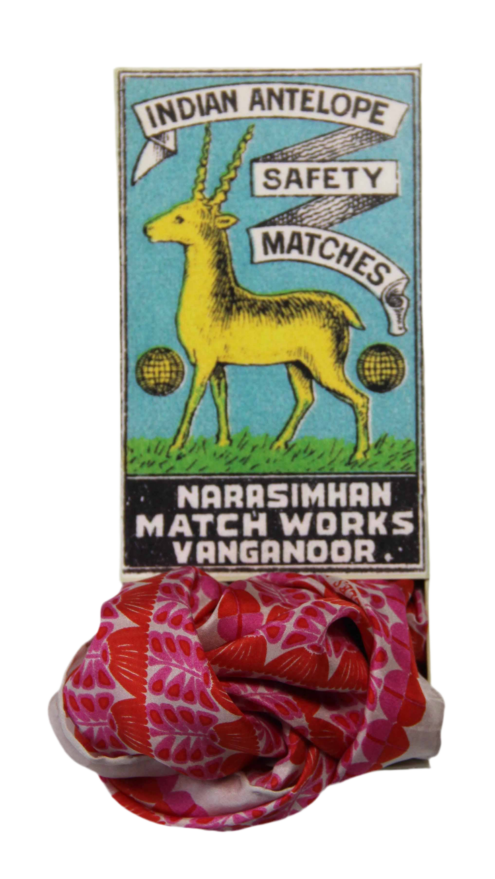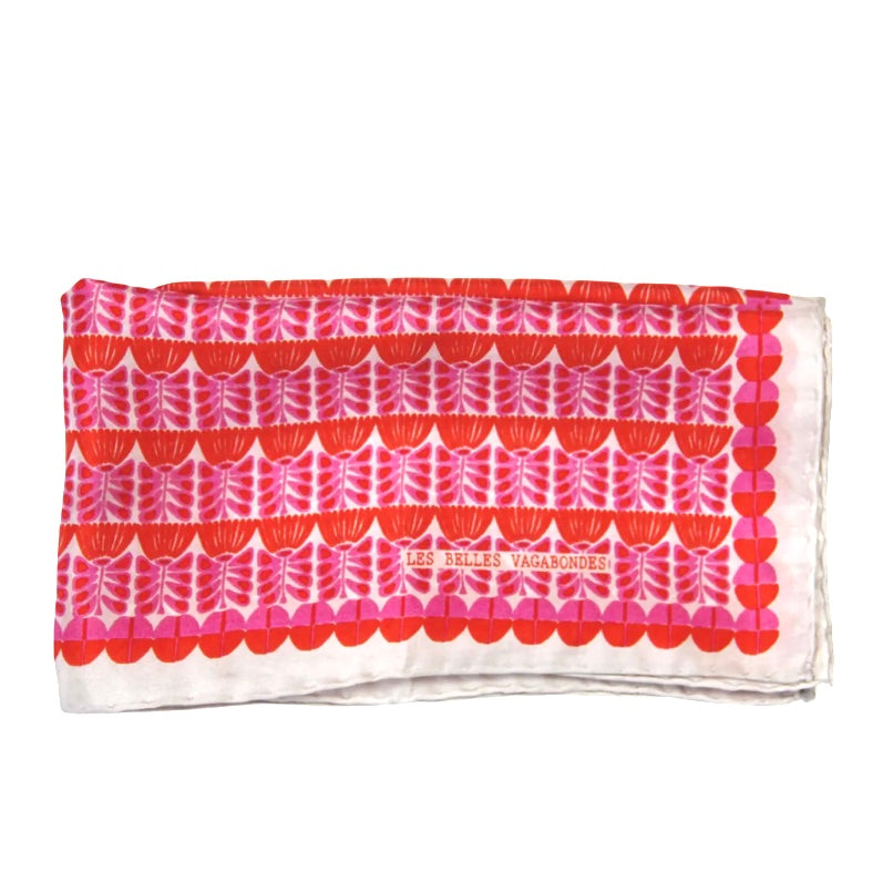 Dieses kleine quadratische Seidentuch von Les Belles Vagabondes ist schicker als ein Bandana und weniger klassisch als der Seidenschal. Es wurde in Paris entworfen und in Indien nach traditioneller indischer Drucktechnik von Hand bedruckt. Jedes Foulard ist ein kleines Stück Handwerkskunst. Das Accessoire kann um den Hals, um das Handgelenk, als Stirnband, in einem Dutt oder sogar um die Tasche getragen werden. Das Tuch wird in einer Schachtel verkauft, deren Aufdruck an alte Streichholzschachteln erinnert. Binden Sie ein hübsches Band darum, und schon sind Sie fertig mit der Geschenkverpackung.
