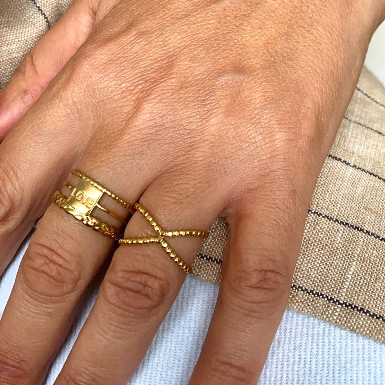 Das grafische Design des filigranen Rings verleiht jedem Outfit eine puristische und elegante Ausstrahlung. Tragen Sie ihn alleine oder zusammen mit anderen Modellen