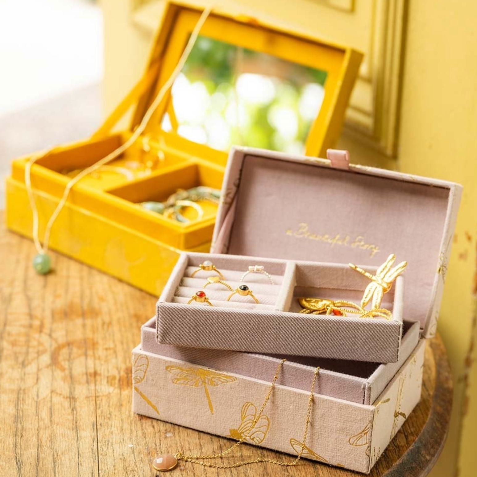 Dieses Schmuckkästchen von A beautiful Story bewahrt Ihre Schätze sicher auf. Es wurde in Indien aus recycelter Baumwolle handgefertigt und bietet eine nachhaltige und stilvolle Möglichkeit zur Aufbewahrung Ihrer wertvollen Schmuckstücke