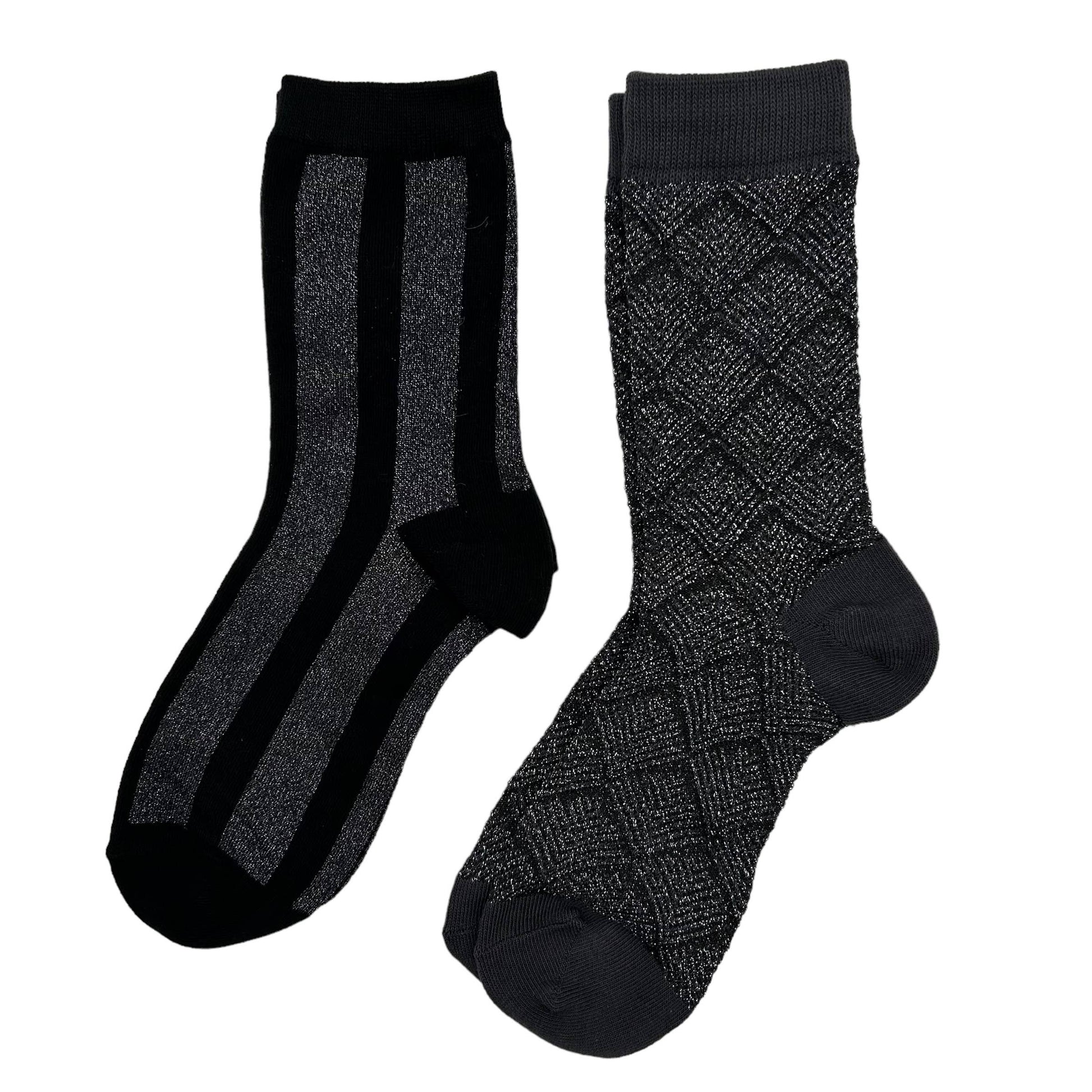 - Socken rechts: 50% Baumwolle, 25% Lurex, 25% Polyester