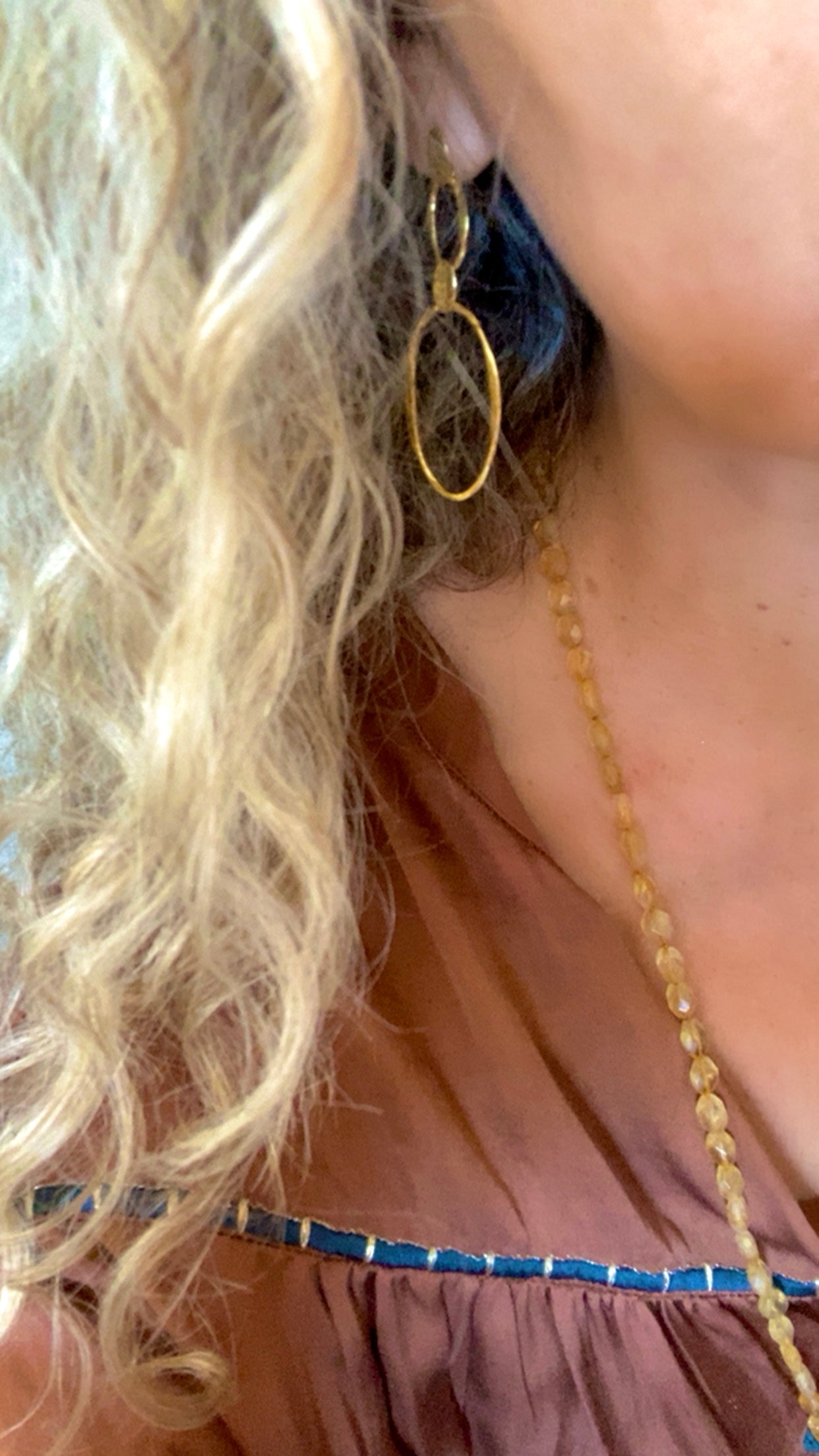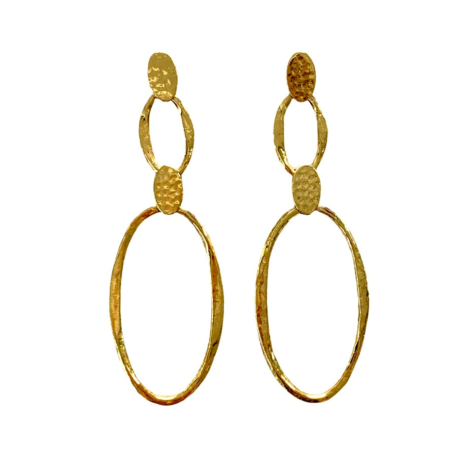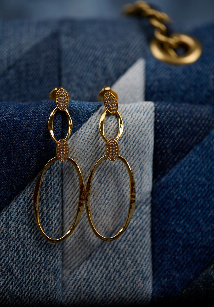 Diese Creolen aus der neuen Kollektion von Pink Sand funkeln aufgrund der gehämmerten Oberfläche im Licht wunderschön. Das handgefertigte Modell aus vergoldetem Messing ist recht leicht und lässt sich dadurch wunderbar im Alltag tragen.